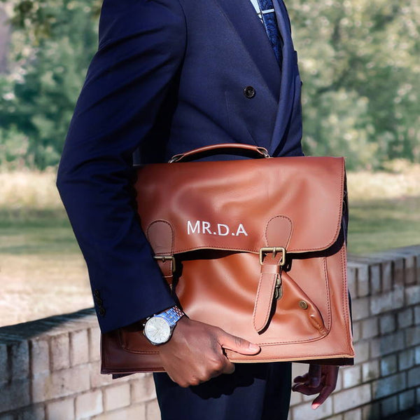 Laser Personalized Leather Messenger Bag