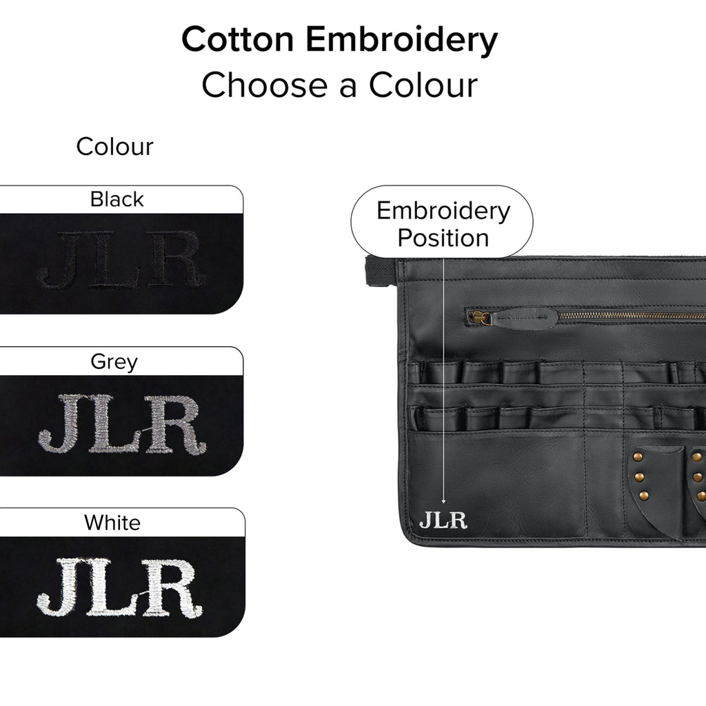 Store your tools in style with our new Classic Hairdressers Apron in Ebony Black Leather that can be personalized with initials, making a perfect gift for hairdressers, barbers and make-up artists.