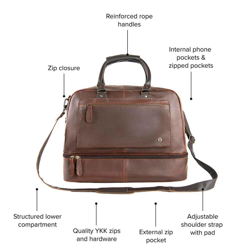 Named after the famous explorer Sir Walter Raleigh, our dependable travel holdall is the perfect companion on your next adventure. With a handy under compartment to keep shirts crisp, the Raleigh in our flagship Vintage Brown Leather is complemented with Mahogany detail. An essential unisex luggage piece for those looking for a stylish weekender bag with extra room.