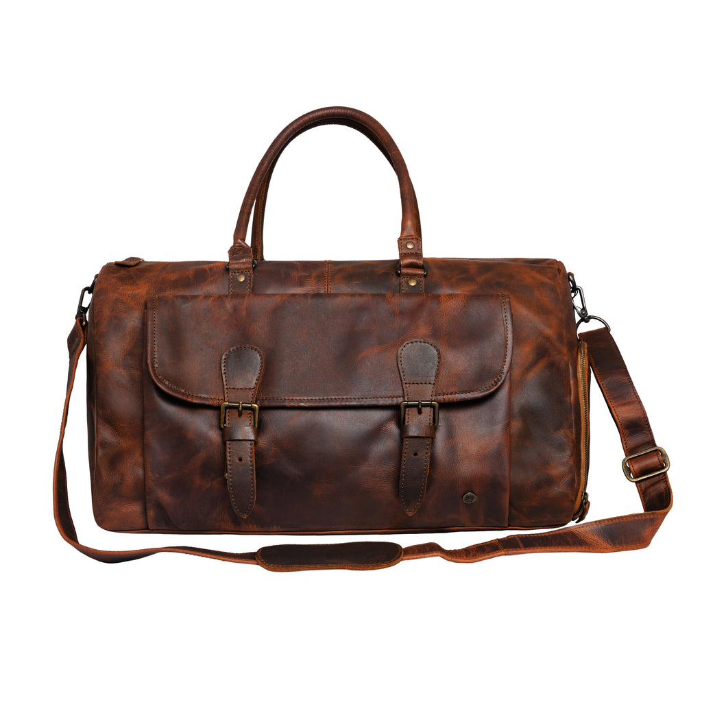 Introducing The Overnighter, in our brand new waxy Buffalo Leather, a travel bag complete with a handy shoe compartment, a main central compartment with ample space for all your overnight essentials and a large external pocket for those items you want instant access to on your travels.