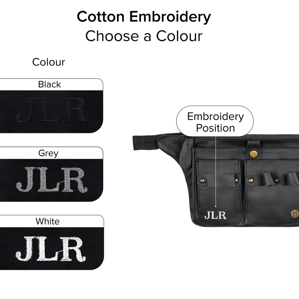 Store your tools in style with our new Classic Hairdresser's Belt in Ebony Black Leather that can be personalized with initials, making a perfect gift for hairdressers and make-up artists.