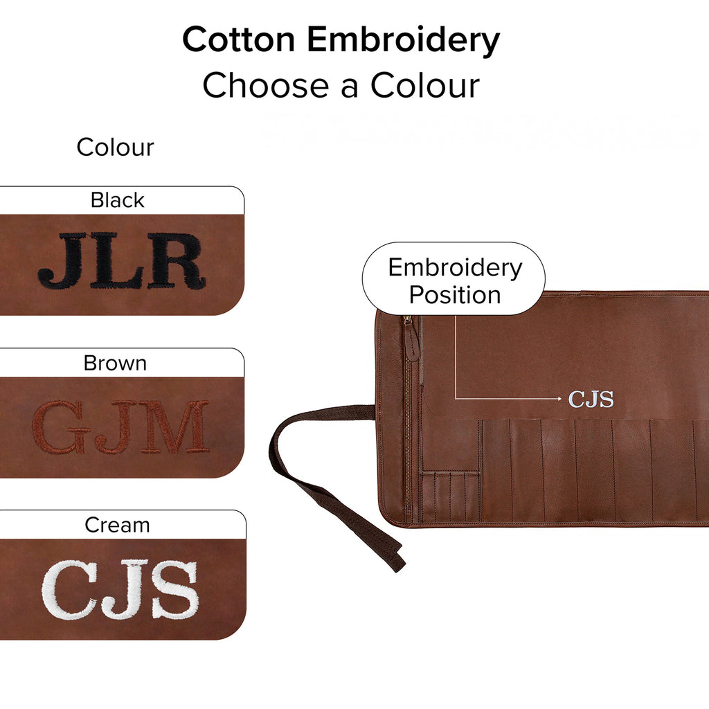 - Features: 13 pockets in varying sizes to hold knives, long zip pocket, fabric strap to fasten when rolled.