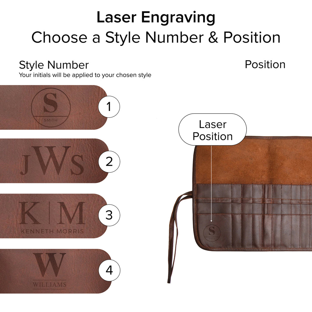 Friends with an artist? Gift them a gift they'll love with our new leather artists roll, with multiple compartments for storing paintbrushes. This handmade to order pencil case can also be embroidered with your creative's initials or personalised with a laser monogram. Simply select your chosen style from the dropdown and add initials and/or word(s) of your choice.