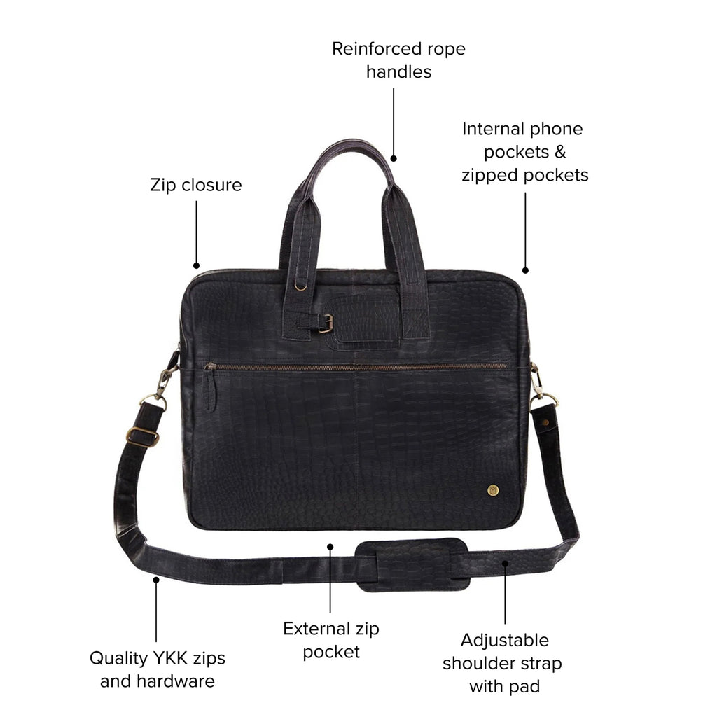 Those looking for a truly classic, yet practical luggage piece need look no further than the MAHI Holdall in Ebony Black Leather. Crafted from full grain leather and fitted with a detachable padded shoulder strap, luggage tag, pockets and buckle, our Classic Holdall is ideal for on-the-go professionals and regular travellers alike. The Ebony Black Leather, dyed using natural vegetable extracts, is perfectly finished by the addition of simple brass hardware fixtures and zips, which add a touch of casual luxe to the holdall.