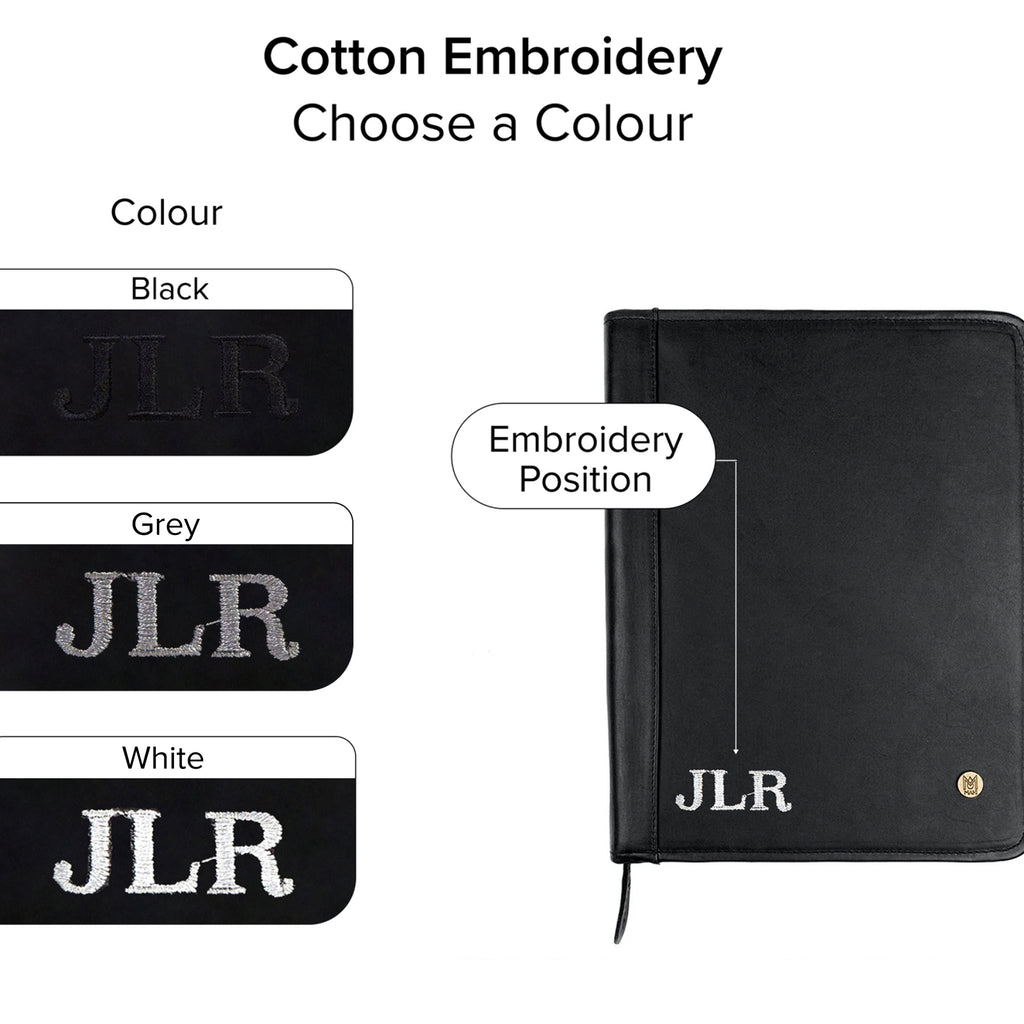 Store documents and files in style with our luxurious full-grain leather zip-up document holder. Perfect for professionals & students alike, our Oxford Zip Up Portfolio in Ebony Black can carry A4 papers and can also be personalized in a selection of thread colours, making it a wonderful gift!