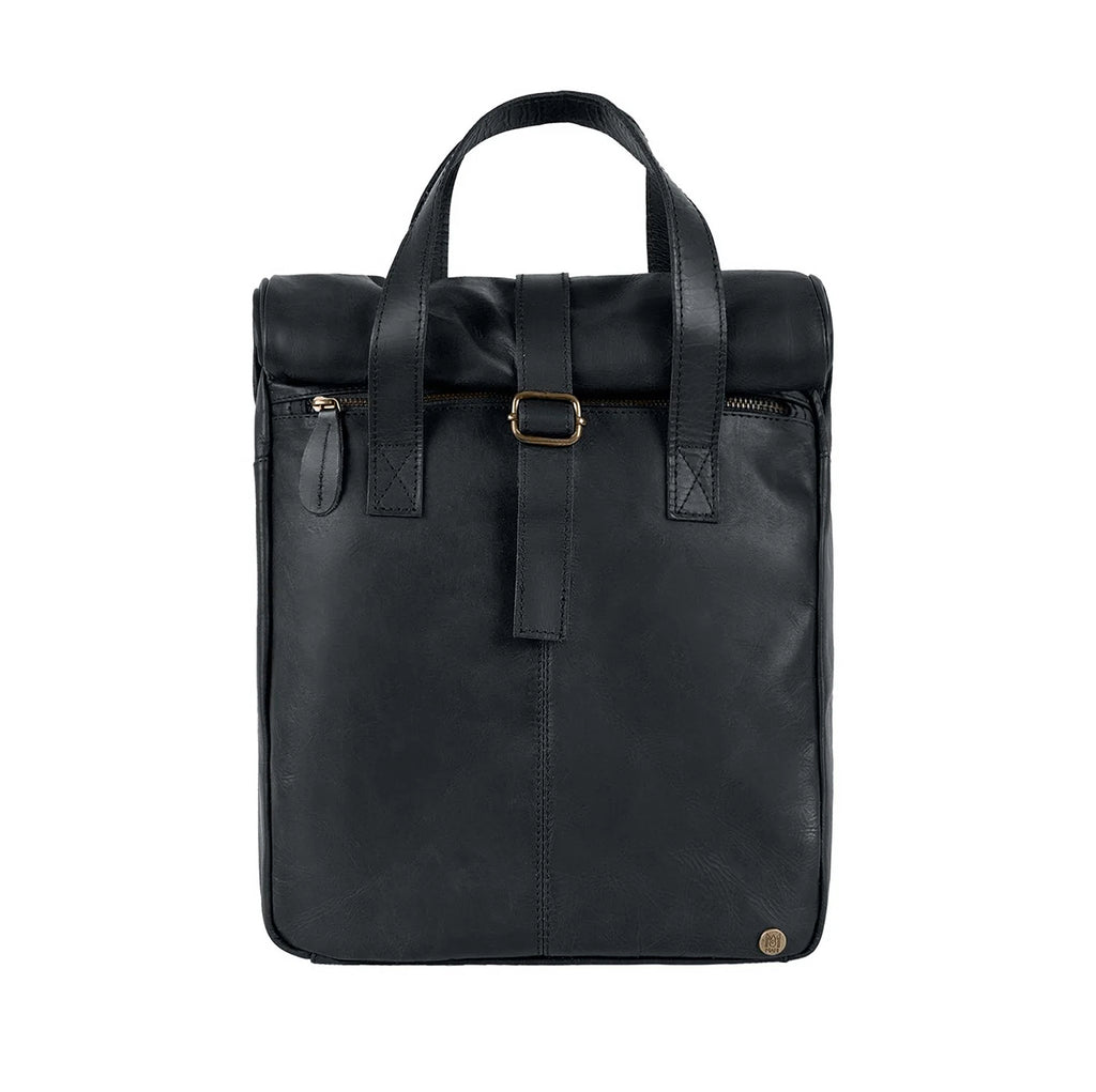 Our Roll Top Backpack in a classic black leather finish is a timeless rugged design, perfect for day-to-day use as a book bag, laptop bag or travel companion on long journeys.