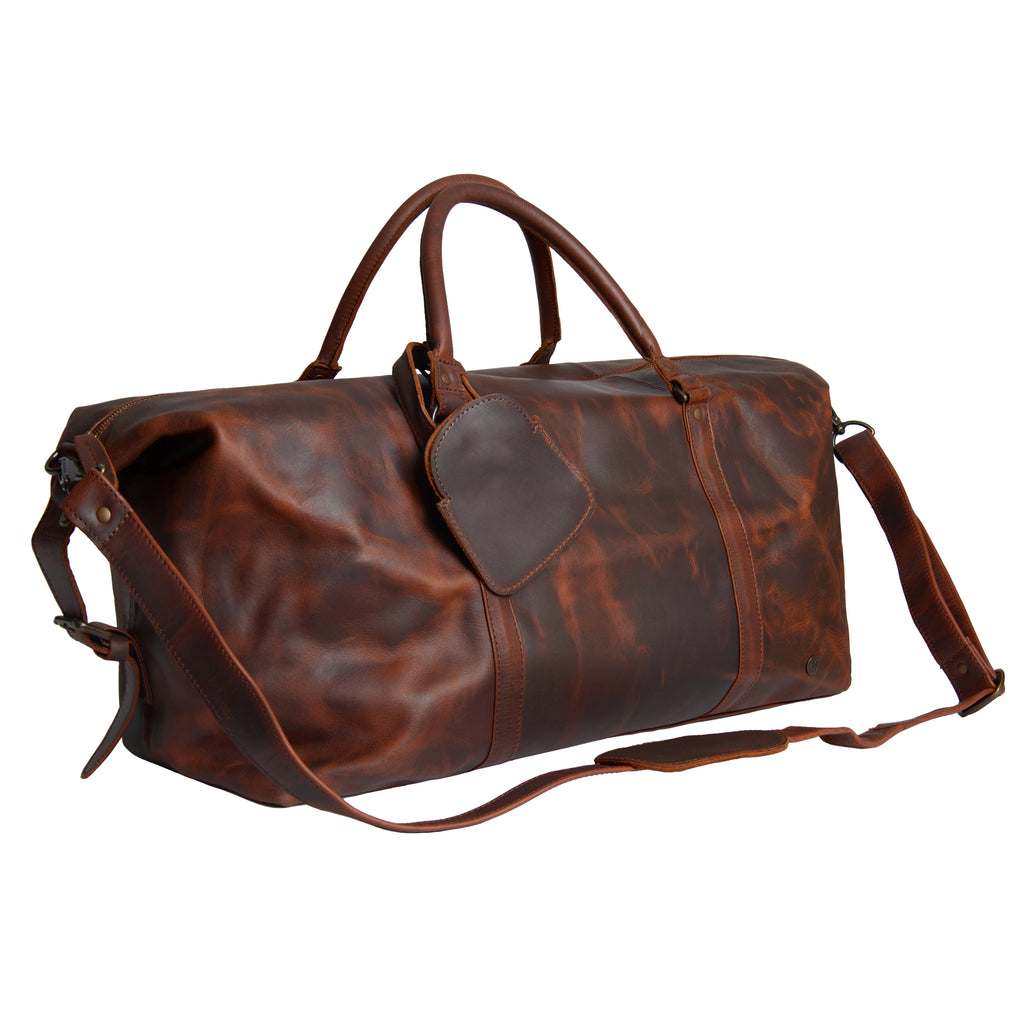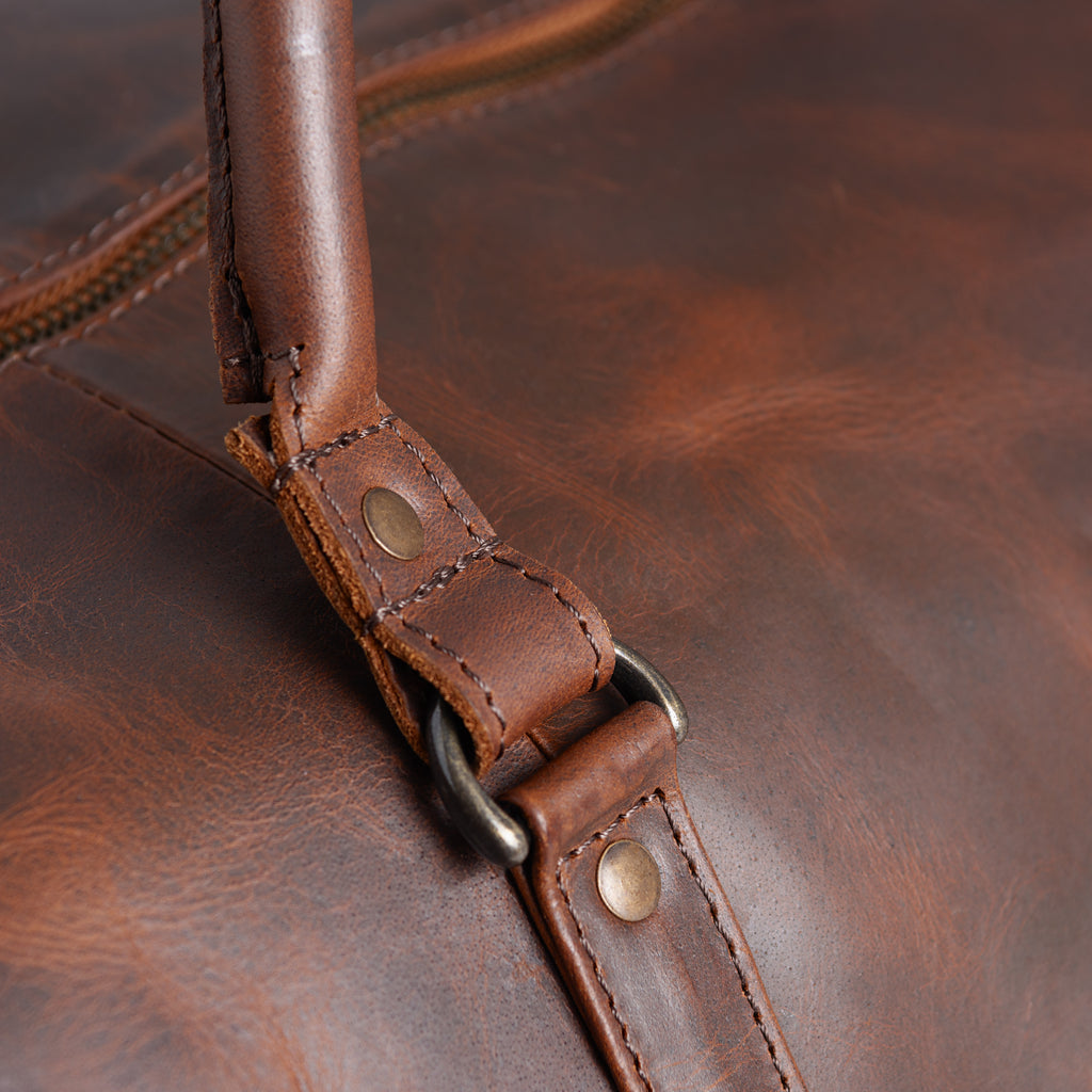 Hit the high seas or the boot of your car with our Armada Duffle in our flagship Vintage Brown Leather, inspired by the 16th-century Spanish sailing fleet. Shaped like a ship's hull, this sturdy weekender bag comes complete with complimentary luggage tag and a hard base to protect it's contents on long journeys (whether land or sea!) The Armada offers an internal zip pocket for your valuables.