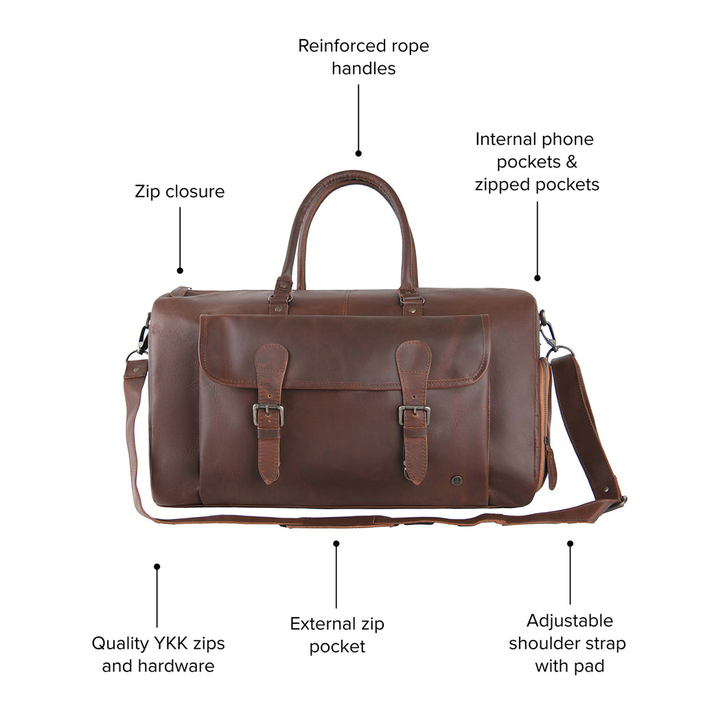 The Overnighter combines classic styling with practical functionality — crafted from full grain leather for enhanced durability, protection, and long-lasting performance.